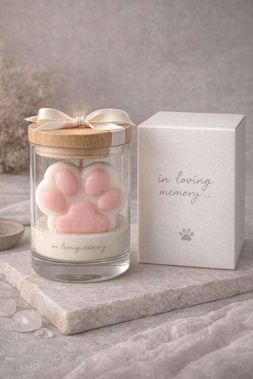 A small candle created in loving memory of the pets who walked beside us and left their pawprints on our hearts.